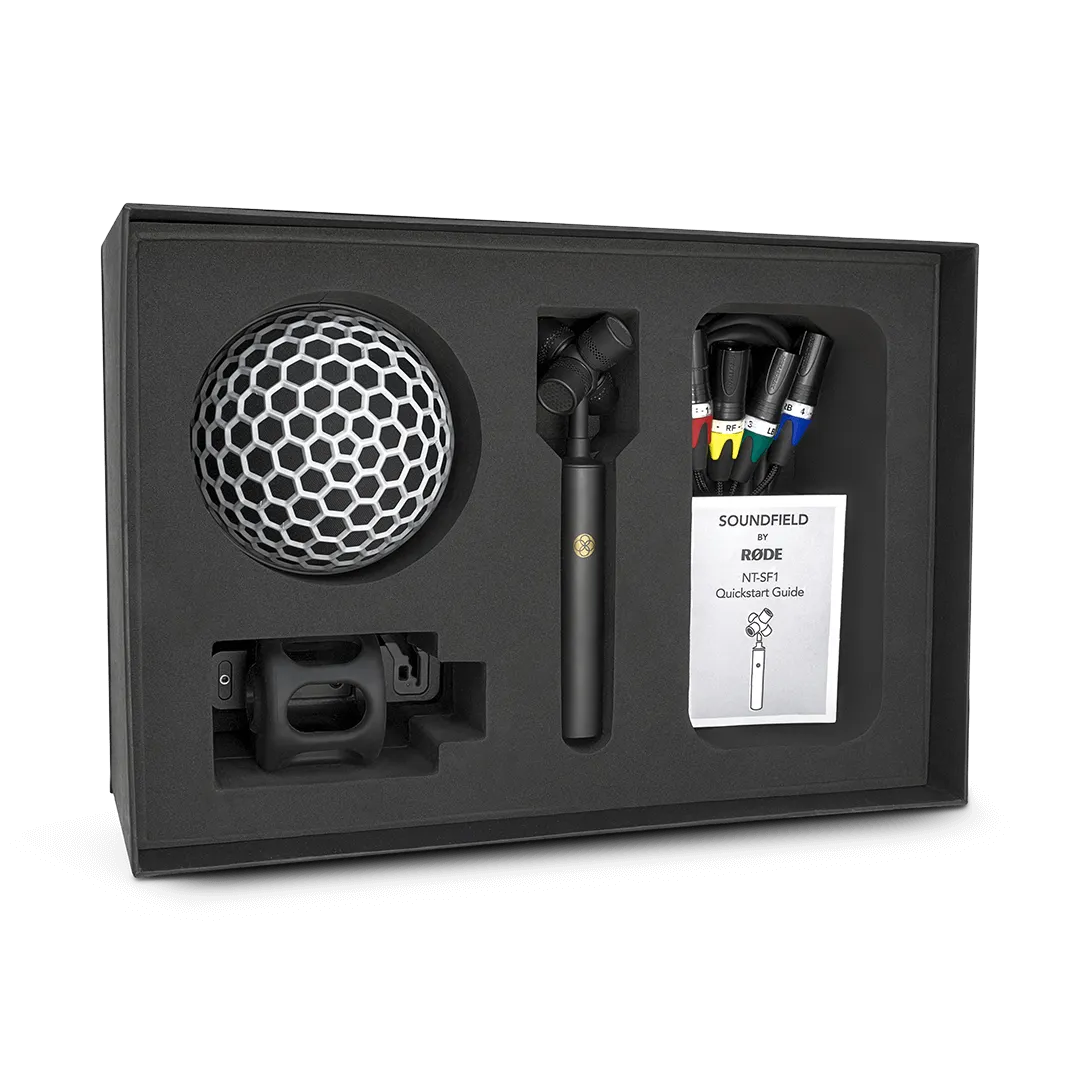 The ‘SoundField by RØDE’ NT-SF1 is a peerless ambisonic microphone that captures broadcast-quality 360° surround sound, offering unprecedented sonic possibilities for use in VR, sound design, immersive audio, and experimental recording applications. The NT-SF1 is the first collaboration between ambisonic pioneers SoundField (who invented the first commercial ambisonic microphone) and RØDE.