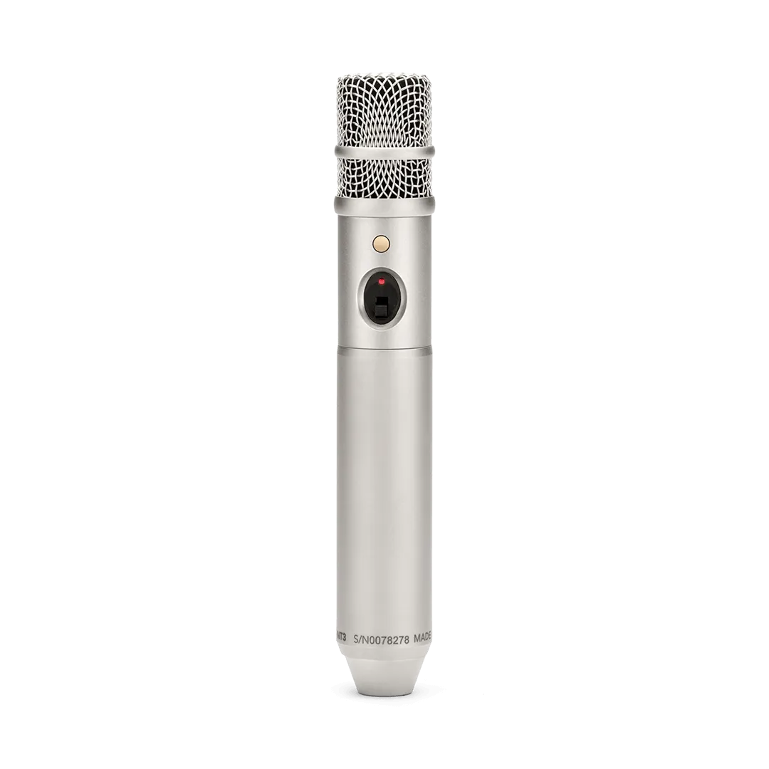 The NT3 is a versatile end-address 3/4-inch condenser microphone that provides incredible detail on almost any sound source you can imagine, from drums to guitar amps to vocals. Intended for studio, stage and location work, the NT3 is ideal for use on a stand or boompole, or as a handheld mic. It features a rugged all-metal body and durable mesh head to ensure it is well protected in the studio or in the field, and can be powered either by P48 phantom power or a 9V battery for added flexibility.