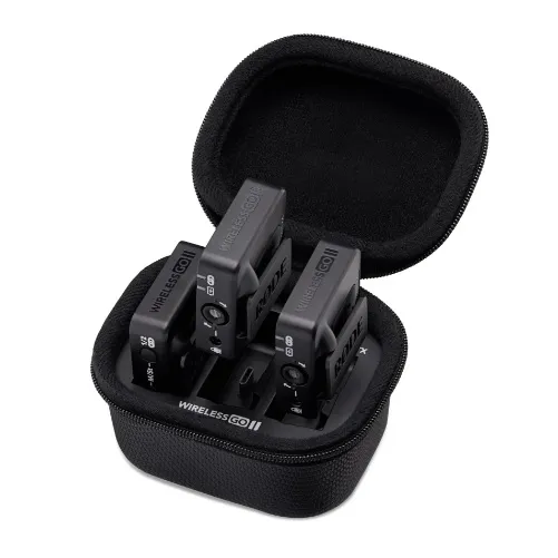 The Charge Case is a handy charging case for the Wireless GO II. It accommodates both transmitters and the receiver and features an integrated battery that facilitates two full recharges of the system for up to 21 hours of continuous use. With a rugged enclosure and zip system, it is also perfect for protecting the Wireless GO II when in transit or storage.