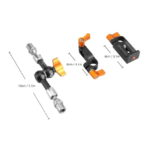 Arm 7″ designed perfectly for mounting monitors, LED lights, a flash light or any device that accepts a 1/4 inch screw male or 3/8 inch screw female or 15mm rod end, payload up to 3Kg.